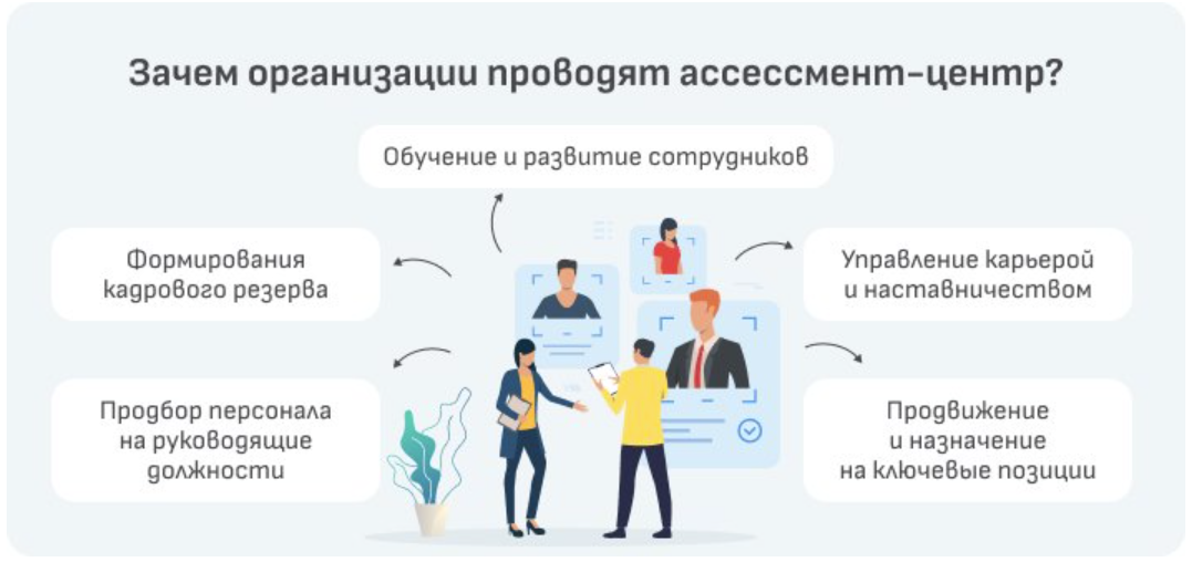 - Формирование кадрового резерва — компании нужно понять, кто из сотрудников готов расти дальше, и что именно стоит развивать в каждом из них. Ассесмент дает ответ на оба вопроса и становится основой для индивидуальных планов развития.