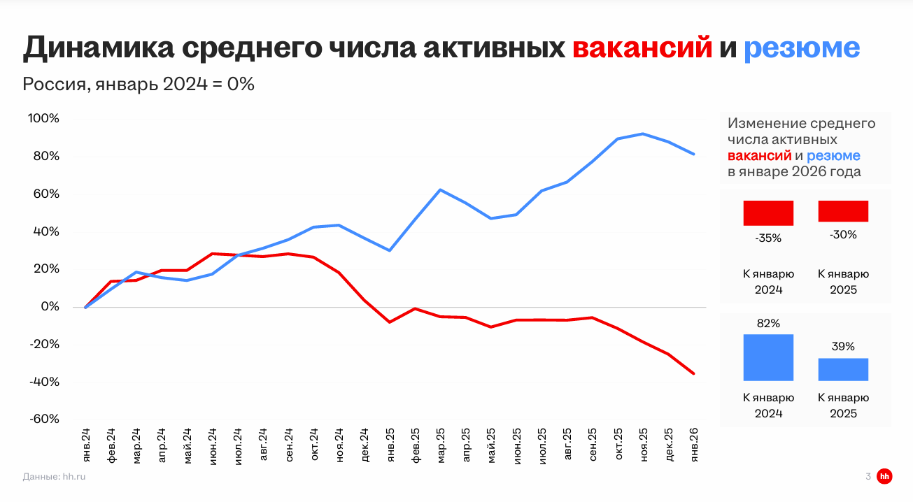 Рекрутеры подтверждают тенденцию. По данным SuperJob, за 2025 год вакансии упали на 12%, а резюме прибавилось на 19%. В пресс-службе сервиса предупредили, что в 2026 году искать работу станет ощутимо сложнее.