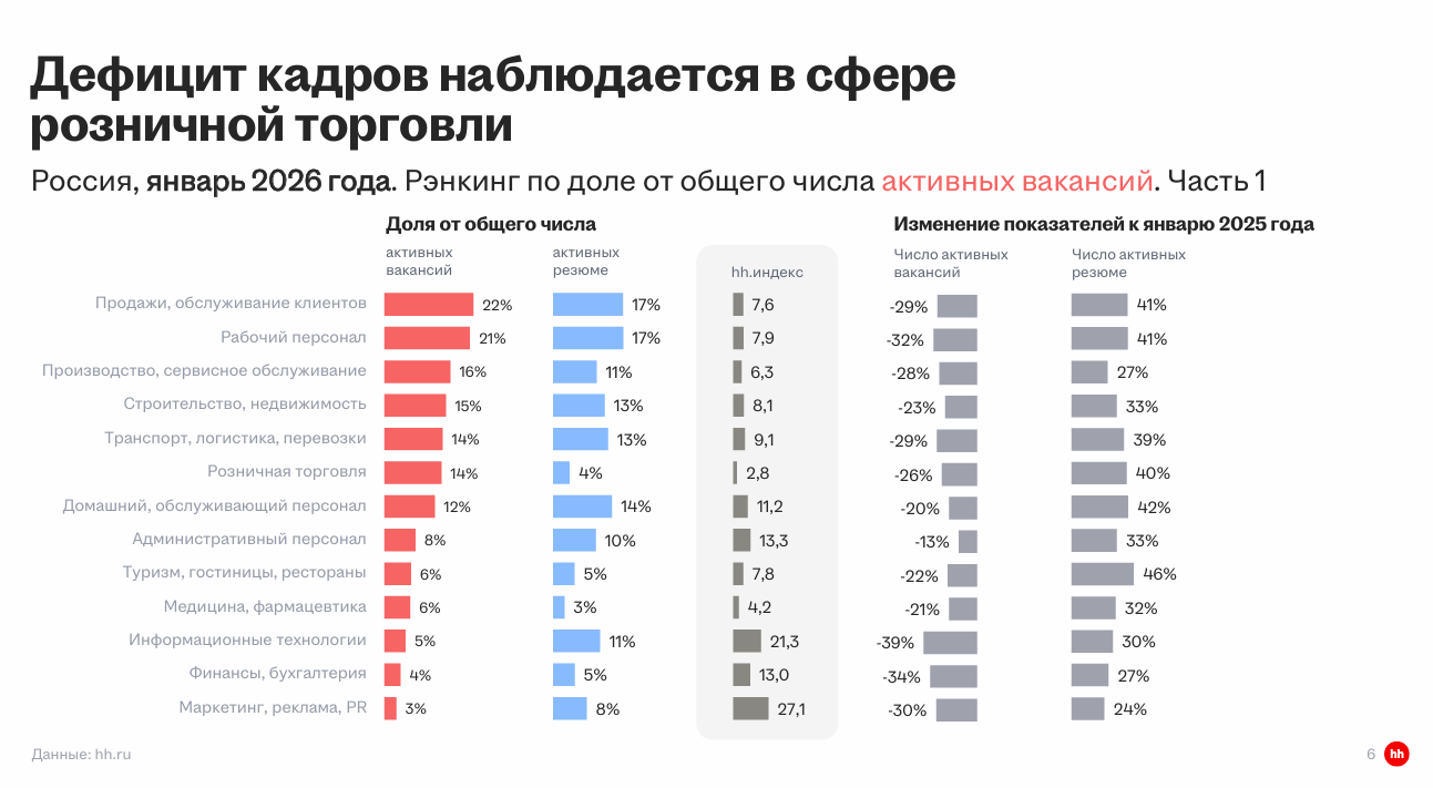 Экономике нужны 12 миллионов работников, а вакансий при этом становится меньше. Звучит как сломанный рынок — но, может, он просто перестраивается? Компании тише нанимают через своих, грузят команды по максимуму и присматриваются к новым форматам работы. Разбираем в февральском дайджесте.