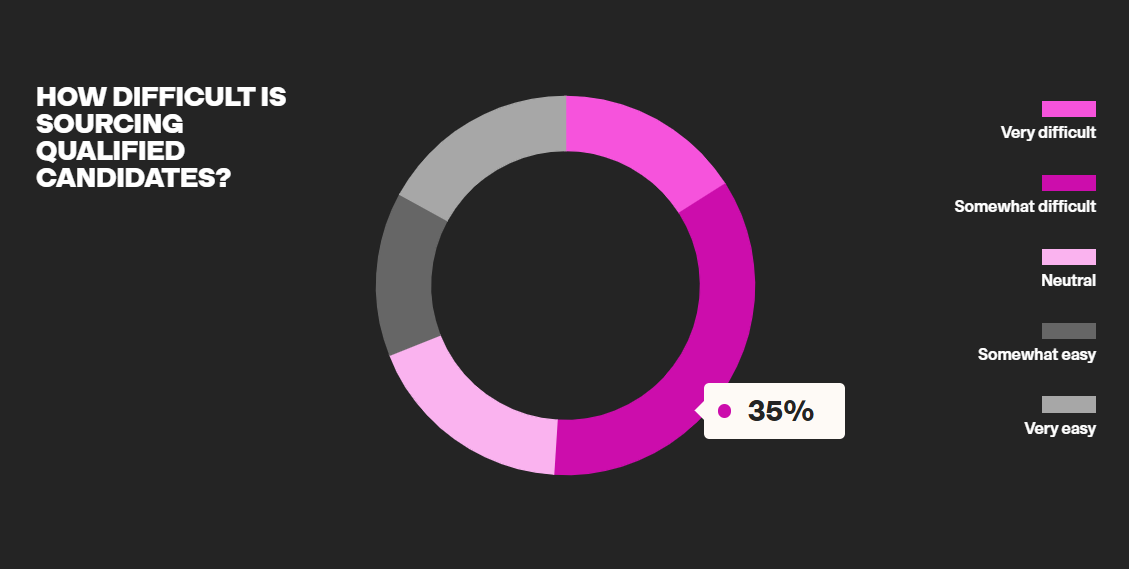 51% команд по подбору признают, что им трудно находить квалифицированных кандидатов. У небольших организаций (до 50 человек) дела еще хуже — 60% не могут найти сами тех, кто им нужен.